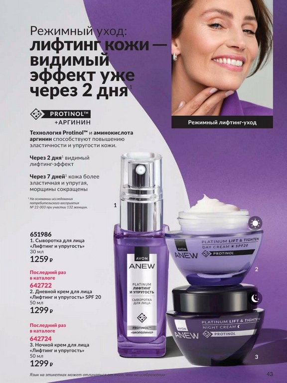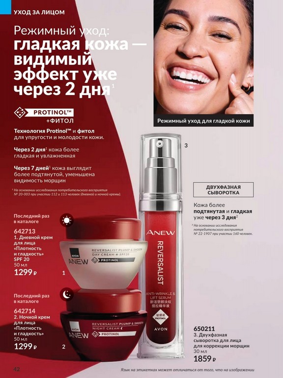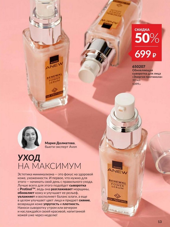 Каталог 05 2026 Avon: Технология PROTINOL это настоящая революция в уходе за кожей! Сыворотка «Мульти-уход», активная формула для борьбы с комплексными признаками старения. Protinol™ совместно с аргинином и флоретином подтягивают, укрепляют, придают эластичность. Фитол оказывает антивозрастной эффект. Экстракт стволовых клеток плодов винограда защищает и обновляет клетки кожи. Если ваш заказ более 2500 рублей по ценам каталога, станьте VIP клиентом и получите свой заказ со скидкой до 35%. Скажите Avon ДА, Подарите себе УДАЧУ вместе с Avon! Присоединяйтесь к Avon!