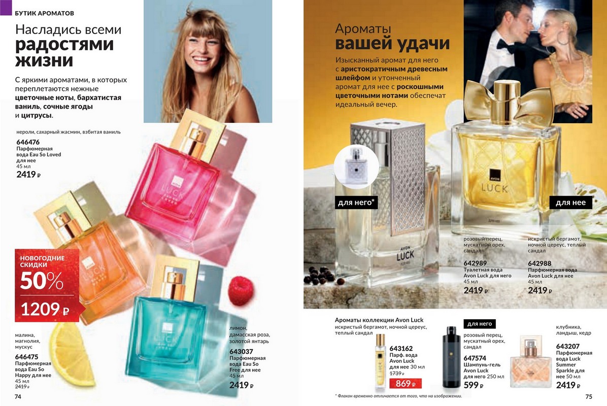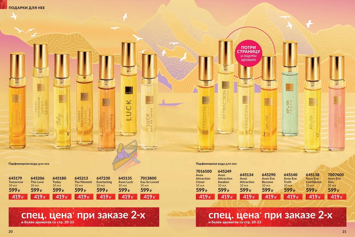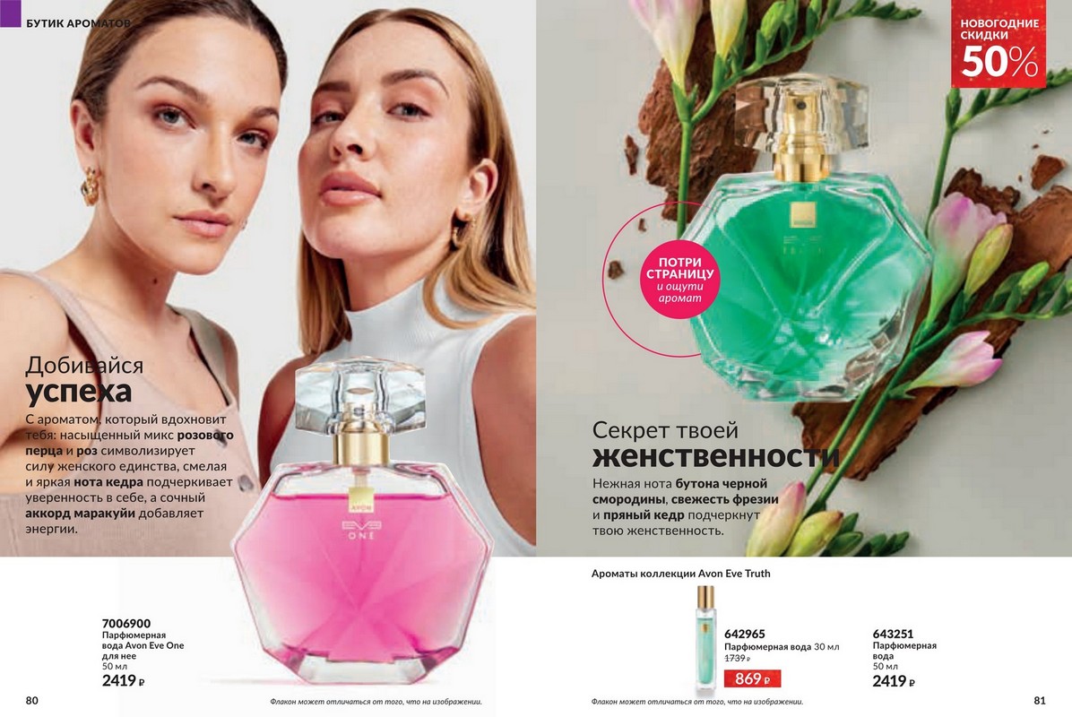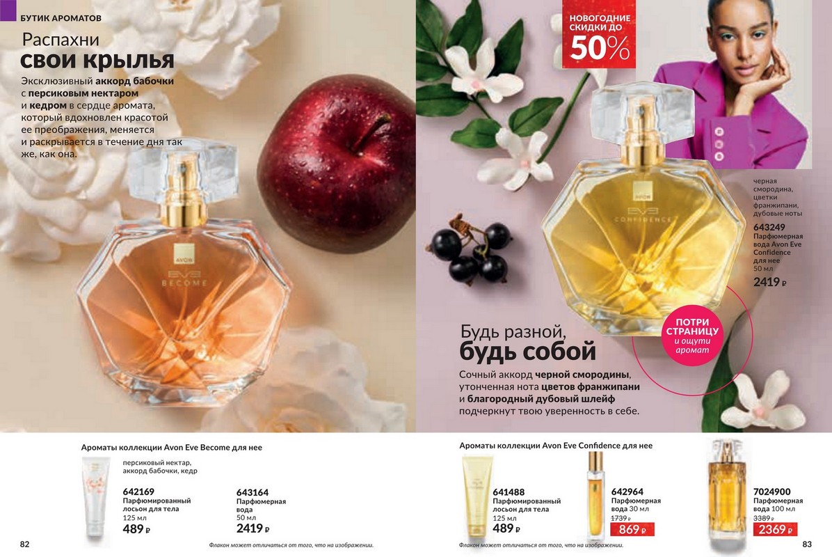 Каталог 12 2025 Avon — большая новогодняя распродажа от Avon. Это ваш уникальный шанс побаловать себя любимыми товарами по самым привлекательным ценам! Скидки подарят Вам прекрасное настроение и счастливую улыбку, ведь отныне Вы можете позволить себе гораздо больше! Гармония. Спокойствие. Блаженство. Аромат – это намного больше, чем три главные ноты. Это звучание самой природы, цветов, масел и экстрактов, которые она нам дарит. В каждом аромате Avon воспевает силу и красоту природы через натуральные ингредиенты и ноты. Открой для себя природную гармонию и безмятежность натуральных нот в завораживающих новинках Avon.
