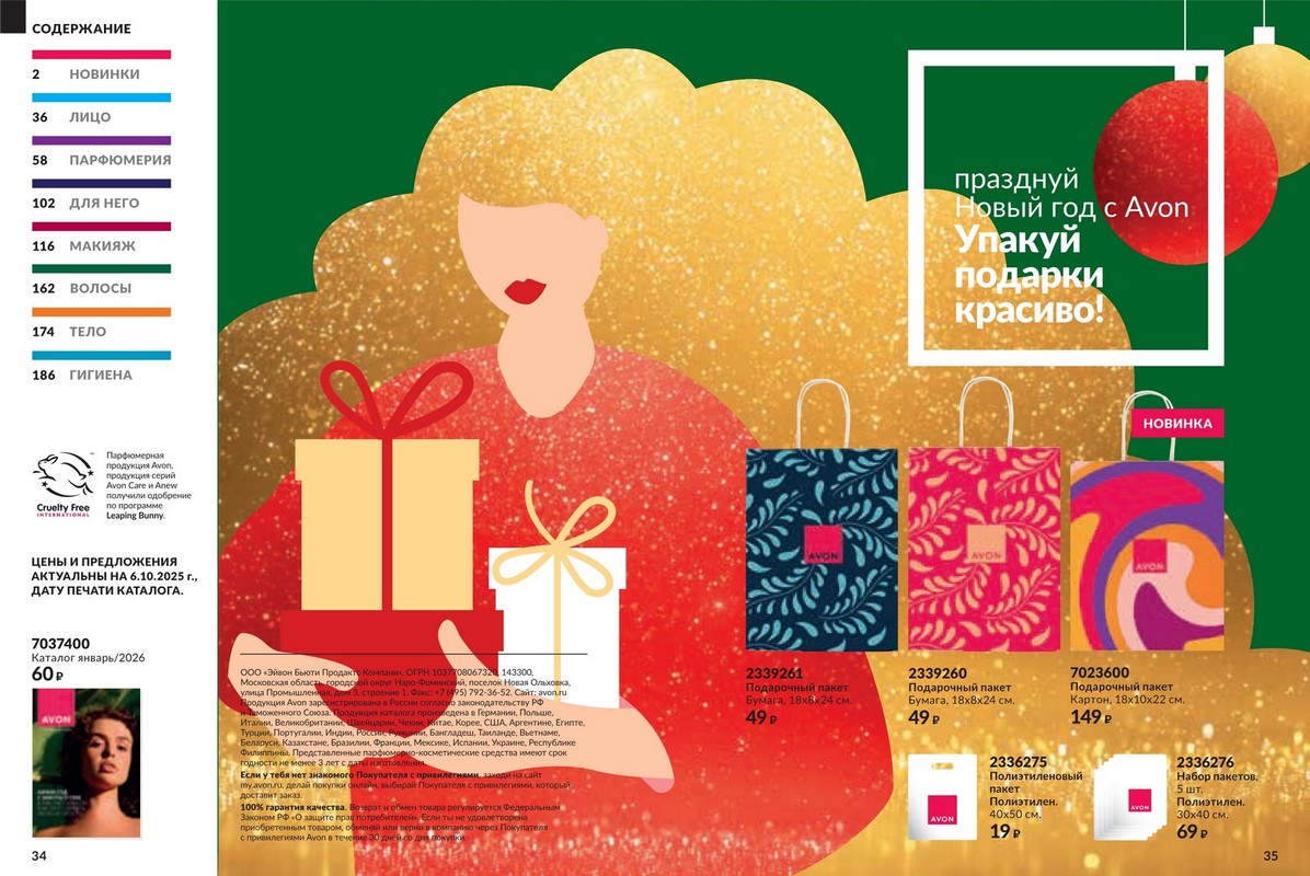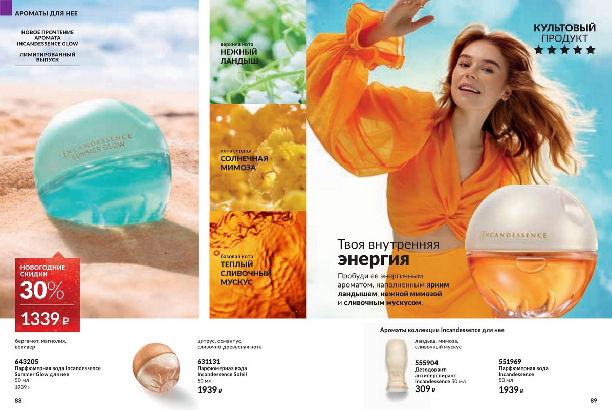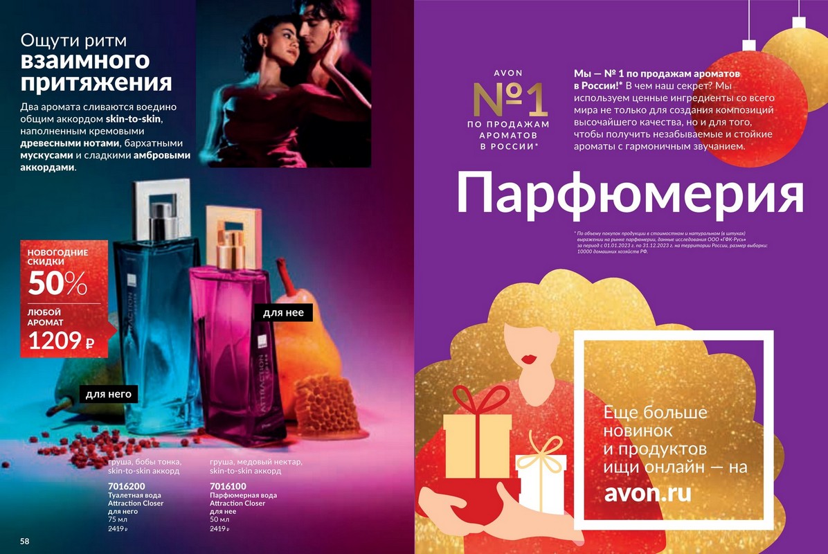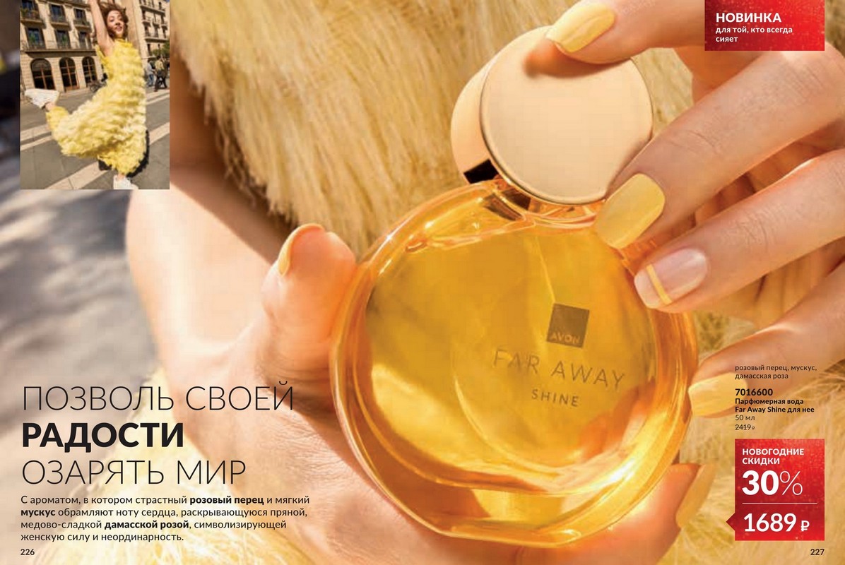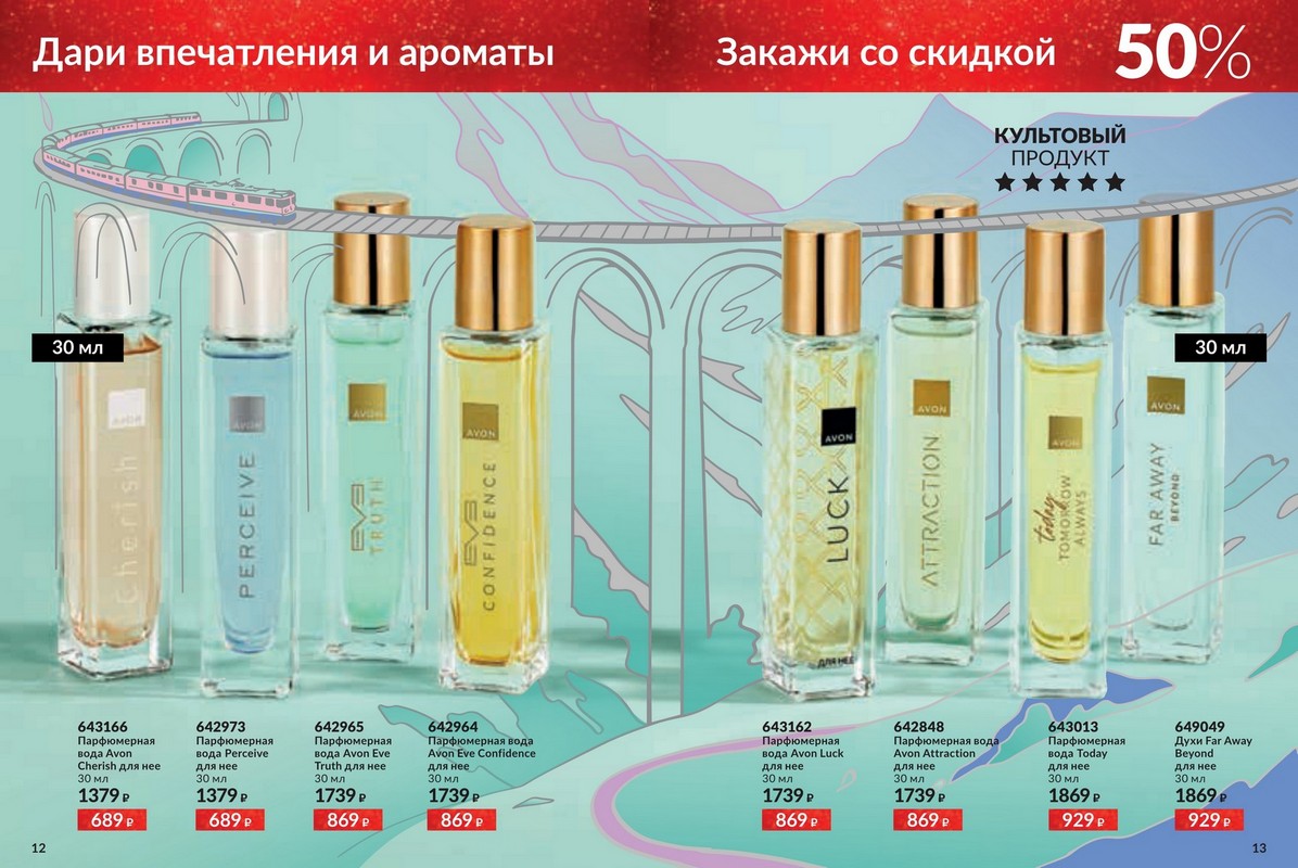 Каталог 12 2025 Avon — большая новогодняя распродажа от Avon. Это ваш уникальный шанс побаловать себя любимыми товарами по самым привлекательным ценам! Скидки подарят Вам прекрасное настроение и счастливую улыбку, ведь отныне Вы можете позволить себе гораздо больше! Гармония. Спокойствие. Блаженство. Аромат – это намного больше, чем три главные ноты. Это звучание самой природы, цветов, масел и экстрактов, которые она нам дарит. В каждом аромате Avon воспевает силу и красоту природы через натуральные ингредиенты и ноты. Открой для себя природную гармонию и безмятежность натуральных нот в завораживающих новинках Avon.