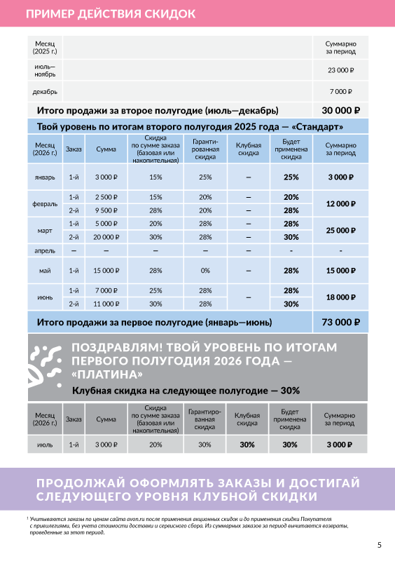 • Сумма твоих заказов* за квартал определяет твой уровень. Размещай больше заказов и достигай вершины привилегий.